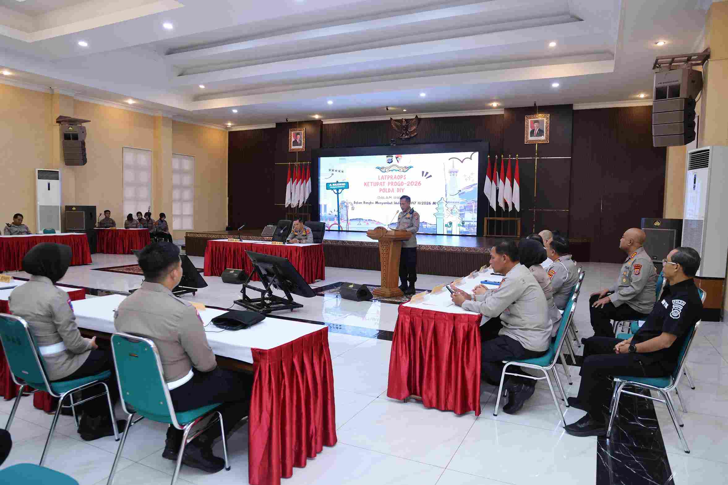 Yogyakarta, SURYAPOS.id – Polda Daerah Istimewa Yogyakarta menggelar Latihan Pra Operasi (Latpraops) Ketupat Progo 2026 pada Rabu (4/3/2026) di Gedung Anton Soedjarwo Polda DIY. Kegiatan ini bertujuan untuk mempersiapkan personel dalam rangka pengamanan arus mudik, arus balik, serta rangkaian kegiatan masyarakat selama perayaan Idulfitri 1447 H.