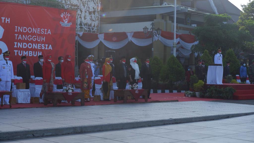 Upacara di pimpin langsung oleh Bupati Sunaryanta berlangsung khidmat dengan tema “Indonesia Tumbuh, Indonesia Tangguh”.untuk