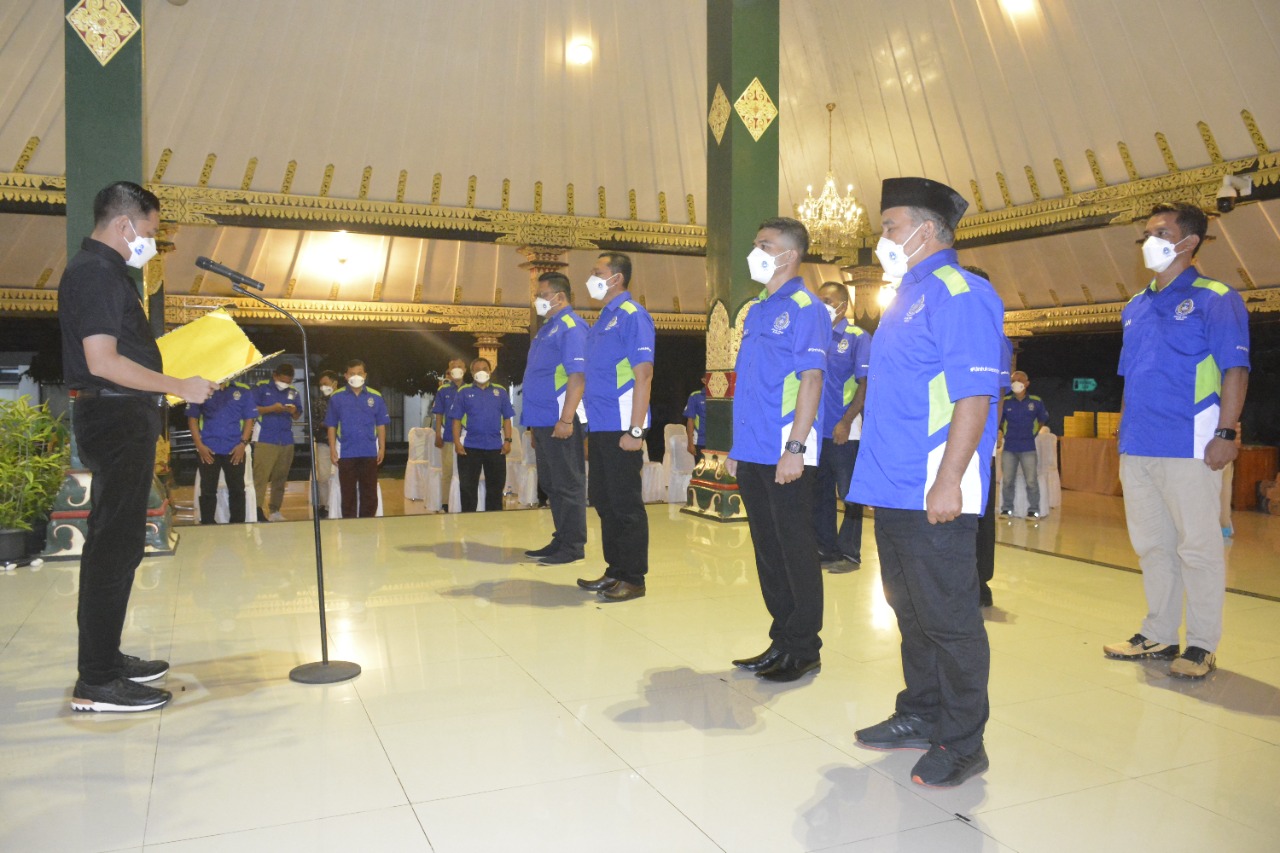 Sleman SURYAPOS – Asosiasi Kabupaten (ASKAB) Persatuan Sepakbola Seluruh Indonesia (PSSI) Kabupaten Sleman melaksanakan kegiatan pelantikan pengurus ASKAB PSSI Kabupaten Sleman. Pelantikan dilakukan oleh Ketua Umum Asprov PSSI DIY, Ahmad Syauqi Soeratno yang dihadiri dan disaksikan secara langsung oleh Bupati Sleman Kustini Sri Purnomo didampingi Wakil Bupati Sleman Danang Maharsa di Pendopo Parasamya Kantor Sekretariat Daerah Kabupaten Sleman, Sabtu (26/6) malam. Adapun pengurus askap pssi sleman terdiri dari 7 orang yakni ketua komite eksekutif Yudi Kurniawan S.I.P, wakil ketua Handoko Sutanto anggota Sukoco S.I.P, Ediyanto, Spd. Agus Handoko, Suhardiyanto dan Andi Jatmiko.