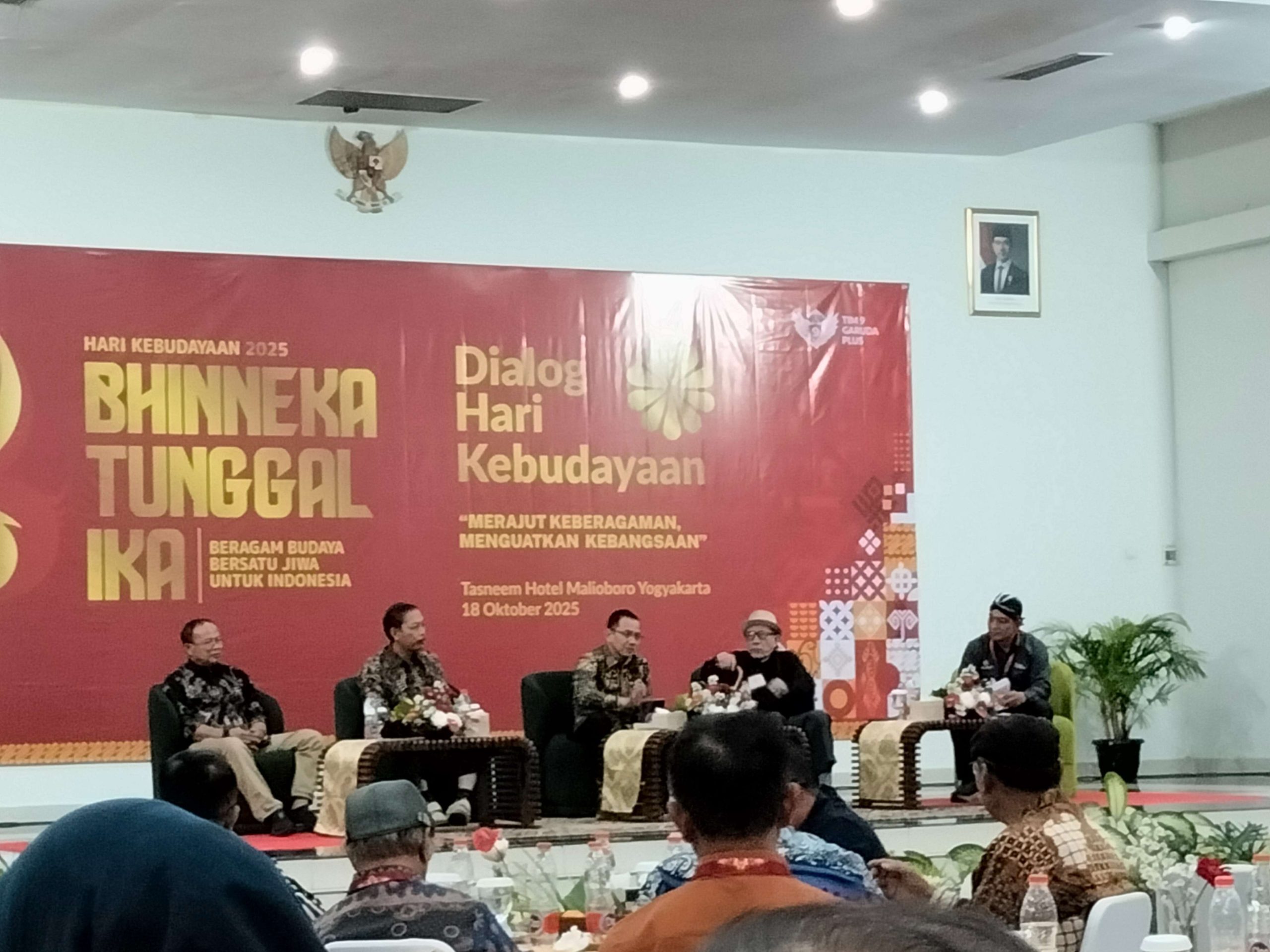 Topik ini dibahas dalam Dialog Hari Kebudayaan dengan tema “Merajut Keberagaman Menguatkan Kebangsaan” yang diadakan oleh Tim 9 Garuda Plus di Mandira Baruga Ballroom, Hotel Tasneem Malioboro, Yogyakarta. Dalam sambutannya, Direktur Jenderal Perlindungan Kebudayaan dan Tradisi Kementerian Kebudayaan RI, Dr Restu Gunawan MHum, pada Sabtu (18/10/2025) menyampaikan bahwa terdapat beberapa pandangan tentang kebudayaan yang perlu diubah jika semua pihak ingin budaya tetap terjaga dan kuat. Salah satu perubahan yang diperlukan adalah mengubah pandangan bahwa kebudayaan tidak hanya sebatas seni.
