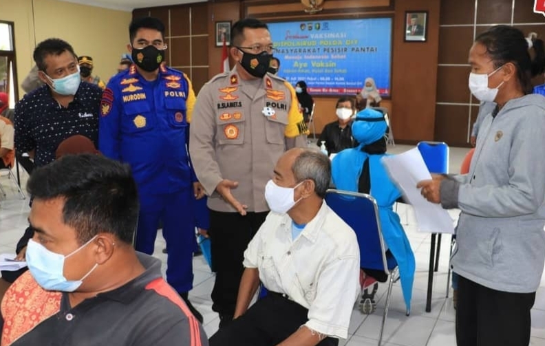 BANTUL suryapos.id Polda DI Yogyakarta menggelar program vaksinasi bagi masyarakat pesisir,nelayan dan pelaku wisata yang tergabung dalam Kelompok Sadar Wisata (Pokdarwis) di Mako Ditpolairud Polda DI Yogyakarta Sabtu (31/7).