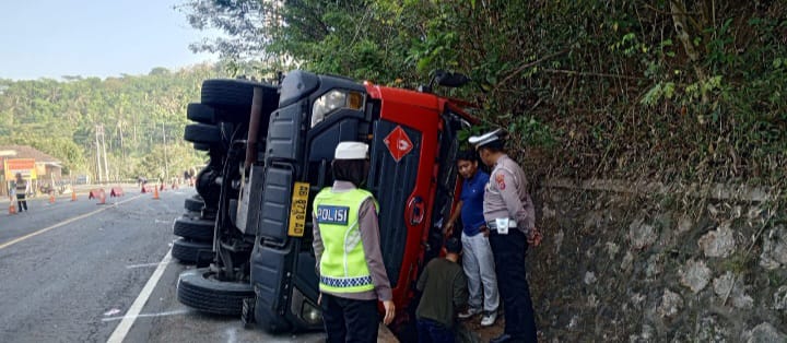 “Sesampainya di TKP, kendaraan hilang kendali saat menikung ke kanan, kemudian oleng dan terguling dengan posisi sisi kanan berada di atas,” ujar Ipda Nur Ikhwan.