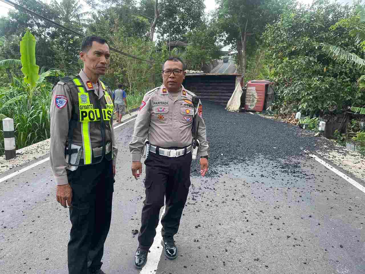 “Sesampainya di lokasi yang menanjak dan menikung ke kiri, kendaraan tiba-tiba kehilangan tenaga sehingga berjalan mundur. Pengemudi berusaha mengerem sambil membanting setir ke kiri, namun truk justru terguling,” ujar Iptu Paryadi saat dikonfirmasi, Kamis siang.