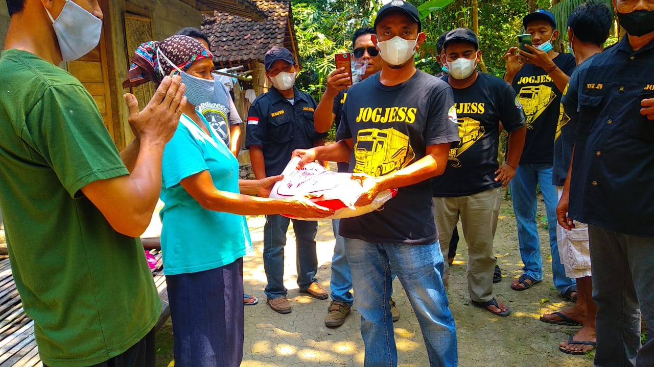 BANTUL. suryapos.id Komunitas Jogja Express (Jogjees) yang merupakan wadah sopir truk angkutan barang lintas Jawa Bali, melakukan bakti sosial dengan memberikan paket sembako bagi masyarakat yang terdampak pandemi Covid 19 dilingkungan Padukuhan Cigudan Kalurahan Triharjo Kapanewon Pandak Kabupaten Bantul, pada Minggu (15/8).