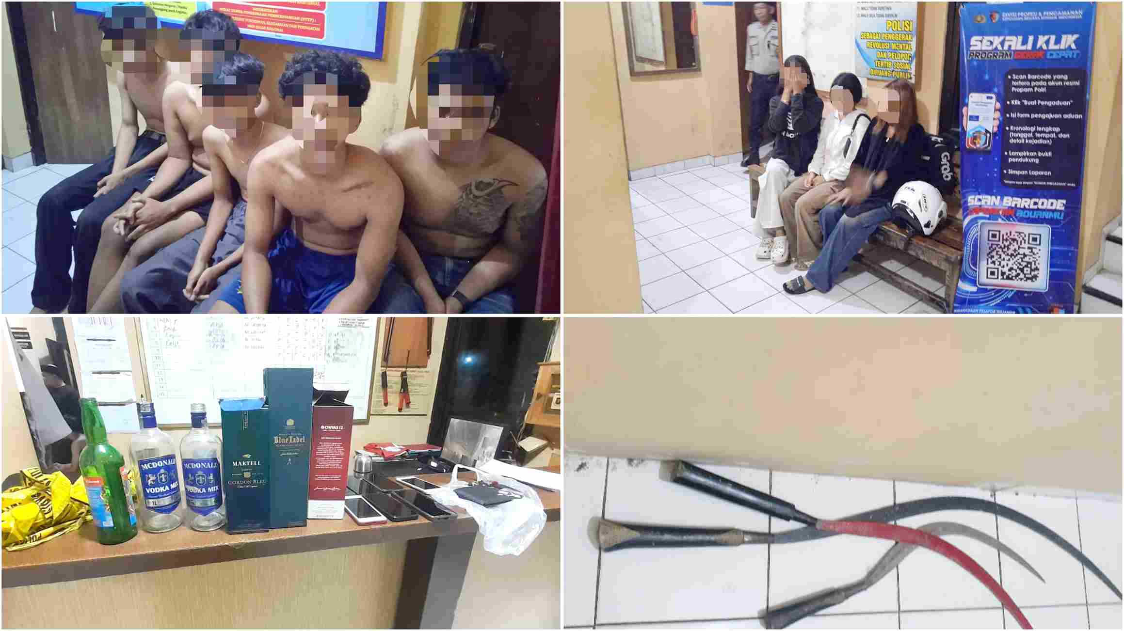 Dalam pemeriksaan awal, polisi mengamankan sejumlah barang bukti berupa tiga senjata tajam jenis clurit, satu botol minuman keras oplosan, serta 47 butir pil sapi.