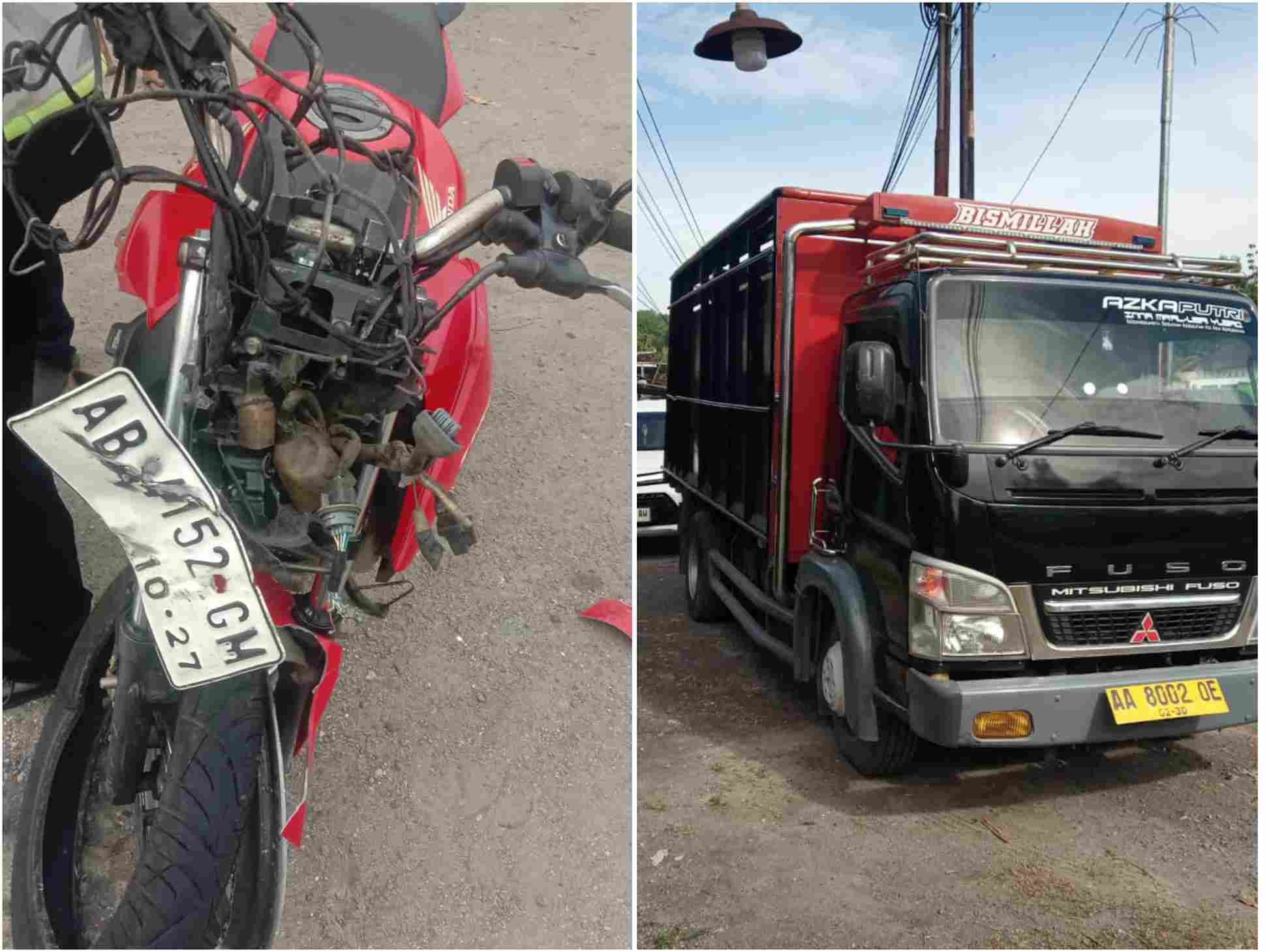 Kasi Humas Polsek Patuk, Aiptu Purwanto, menjelaskan kecelakaan melibatkan sepeda motor Honda CBR bernomor polisi AB-4152-GM yang dikendarai Karsono (52), warga Kalurahan Gari, Kapanewon Wonosari, dengan sebuah Mitsubishi light truck bak kayu bernomor polisi AA-8002-OE yang dikemudikan Dedi Leistiyanto (29), warga Kapanewon Prambanan, Kabupaten Sleman.